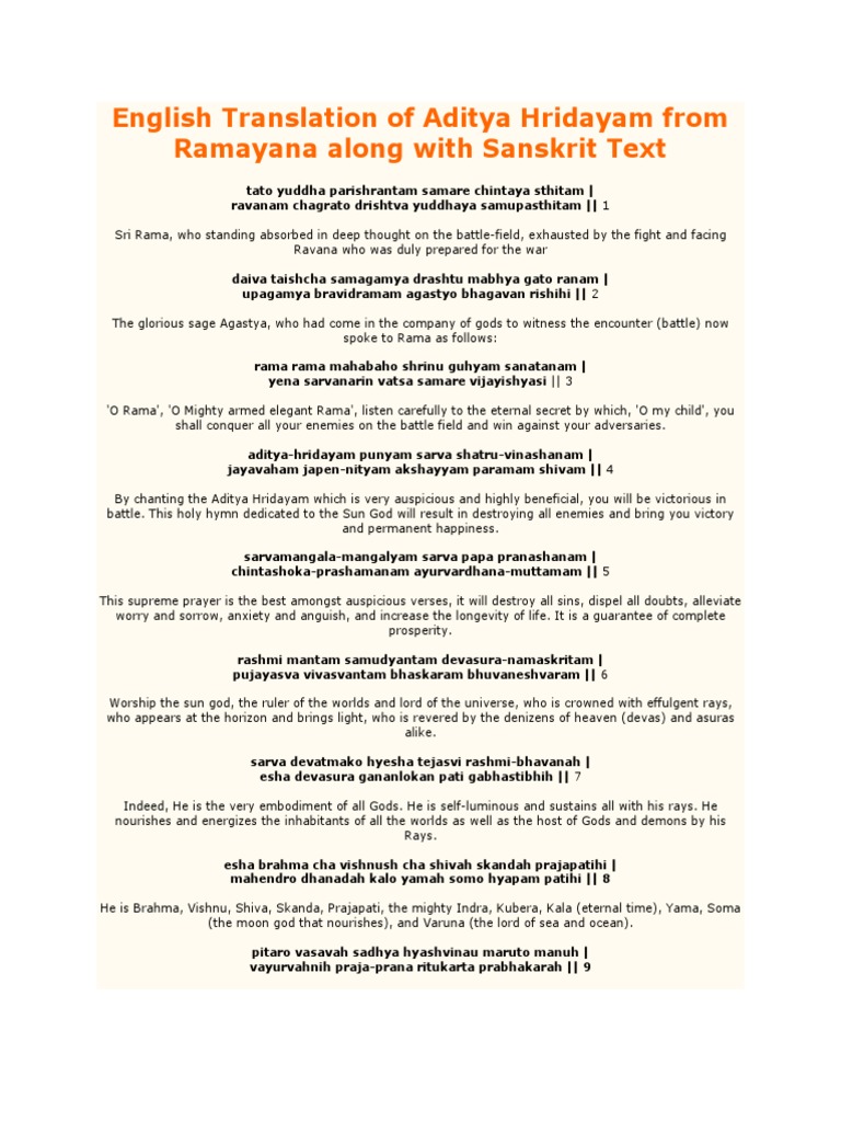 Aditya Hrudayam / Aditya hrudayam is one of the greatest mantras ever.