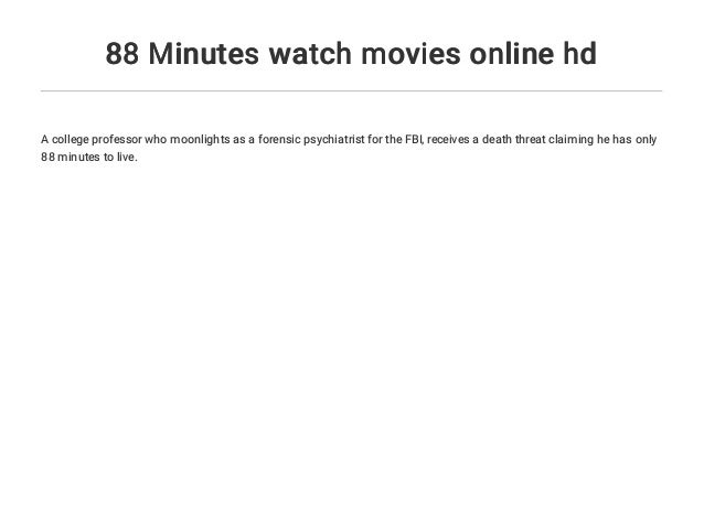Watch 88 Minutes Movie Free Online 9movies A college professor who moonlights as a forensic psychiatrist for the fbi, receives a death threat claiming he has only 88 minutes to live.